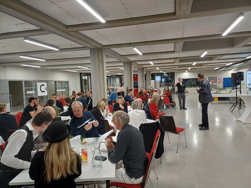Geschmückt mit Blumengefüllten Rundkolben, Bechergläsern, Reagenzgläsern und allem, was das Chemielabor so zu bieten hat, und vertreten durch ein fulminantes Häppchenangebot, arrangiert von TYROL Catering, lud die Aula der Pädagogischen Hochschule langjährige und frischgeschmiedete Freund:innen, Mitglieder und Unterstützer:innen des Vereins klasse!forschung in ihre Räumlichkeiten.