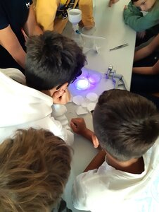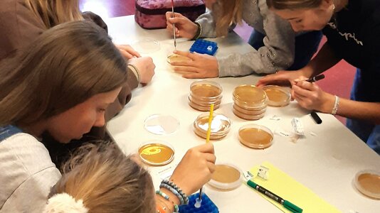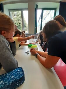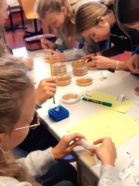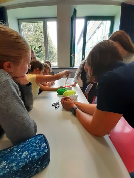Einiges zu Tüfteln gab es für Groß und Klein. So durften sich die jüngeren Schüler:innen mit der Entstehung und Verbreitung von Mikroplastik auseinandersetzen. Fact to know: auch unsere Waschmaschinen spielen einen großen Teil in der Mikroplastikentstehung mit. Durch den Waschvorgang werden winzige Teilchen an Mikroplastikfasern an das Abwasser abgegeben. Jene, die zu klein sind, um durch die Kläranlage herausgefiltert zu werden, finden direkt ihren Weg ins Meer. Schon mal von Ideonella Sakaiensis gehört? Das sind Bakterien, die 2016 in Japan entdeckt wurden und Mikroplastik zersetzen können. Spannend? Finden wir auch – deshalb durften die kleinen Forscher:innen anschließend ihre eigenen Bakterien (in ihrem Fall Hefe) züchten, um sie anschließend mit nach Hause zu nehmen.